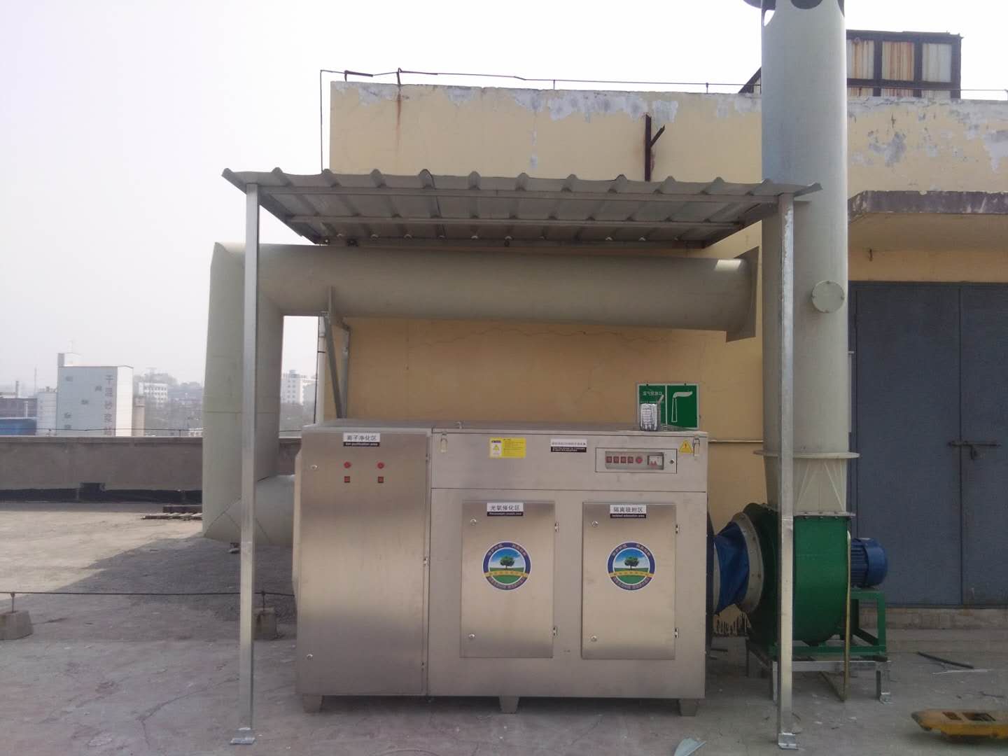 設備(bèi)分別(bié)由離子淨化區、光氧催化區、隔離吸附(fù)區三部分組成的一體(tǐ)機